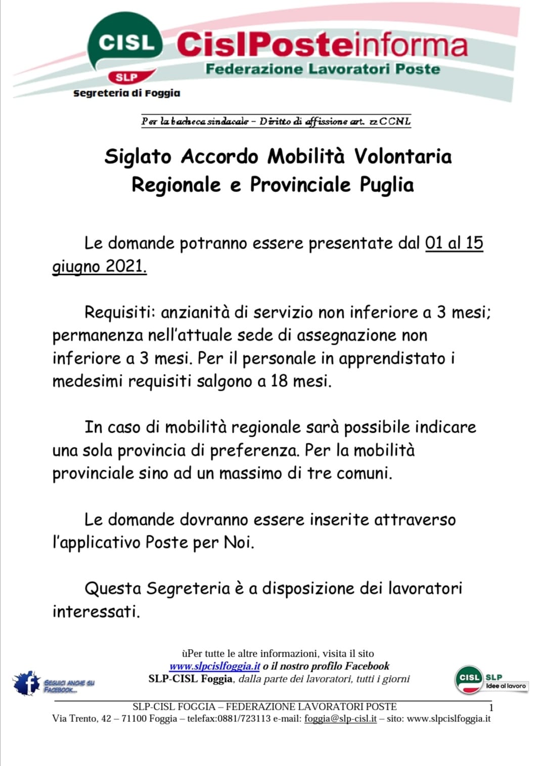 La lettera del neo segretario SLP Cisl Foggia ai lavoratori postali di Capitanata.