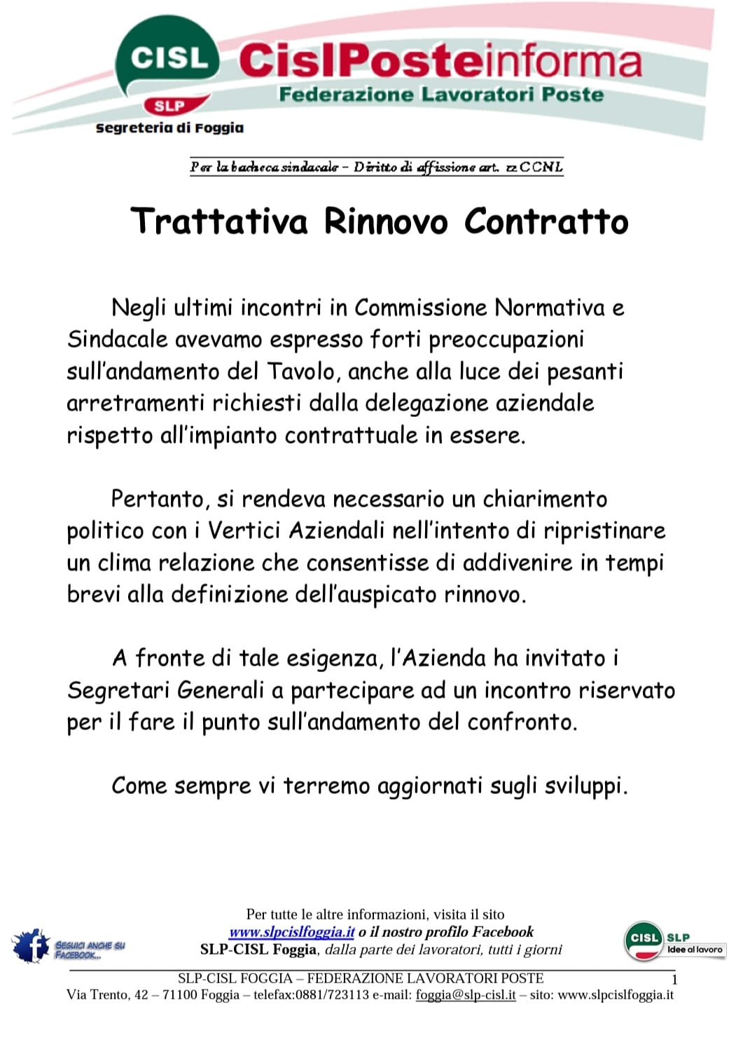 La lettera del neo segretario SLP Cisl Foggia ai lavoratori postali di Capitanata.