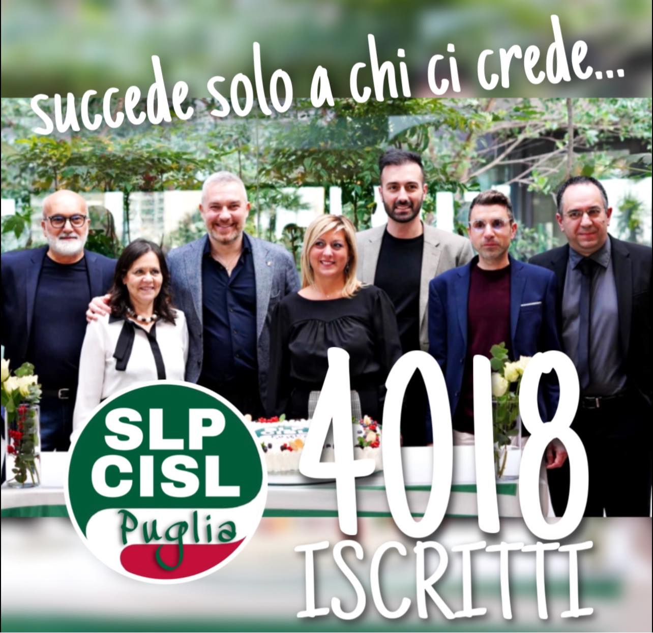 SLP Cisl Puglia supera i 4000 iscritti! Ai lavoratori il nostro GRAZIE !