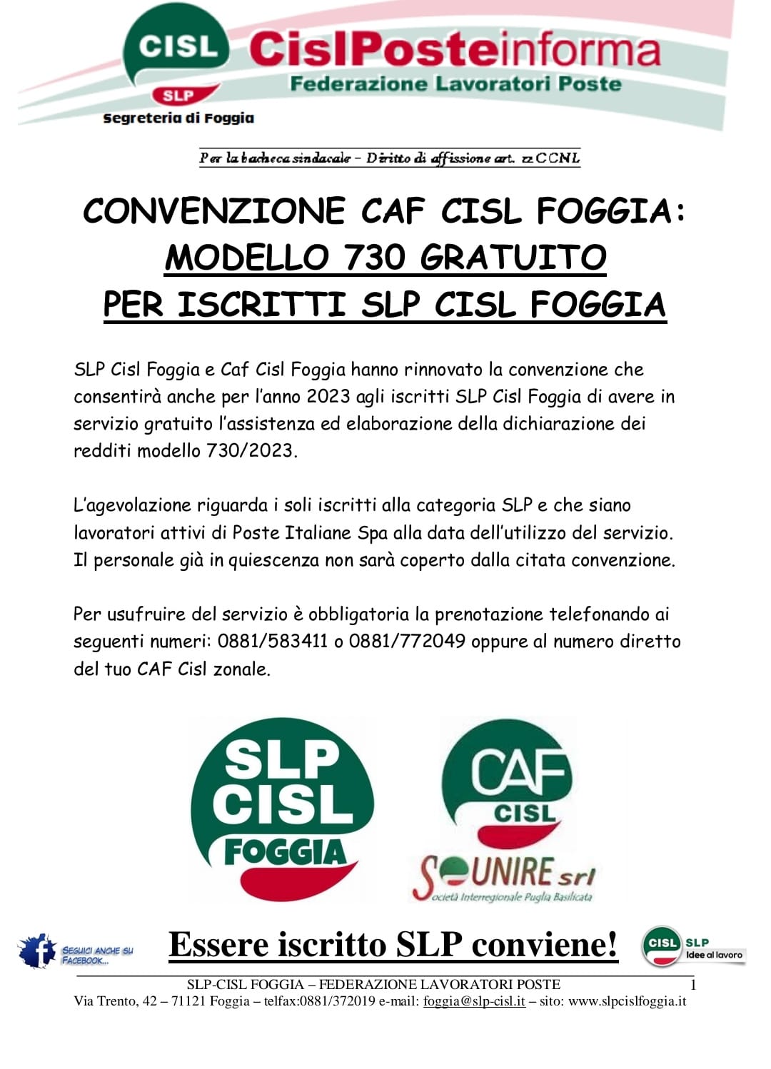 Le Convenzioni SLP CISL FOGGIA offrono servizi anche ai familiari dei propri iscritti convenzioni stipulate con aziende e negozi ...