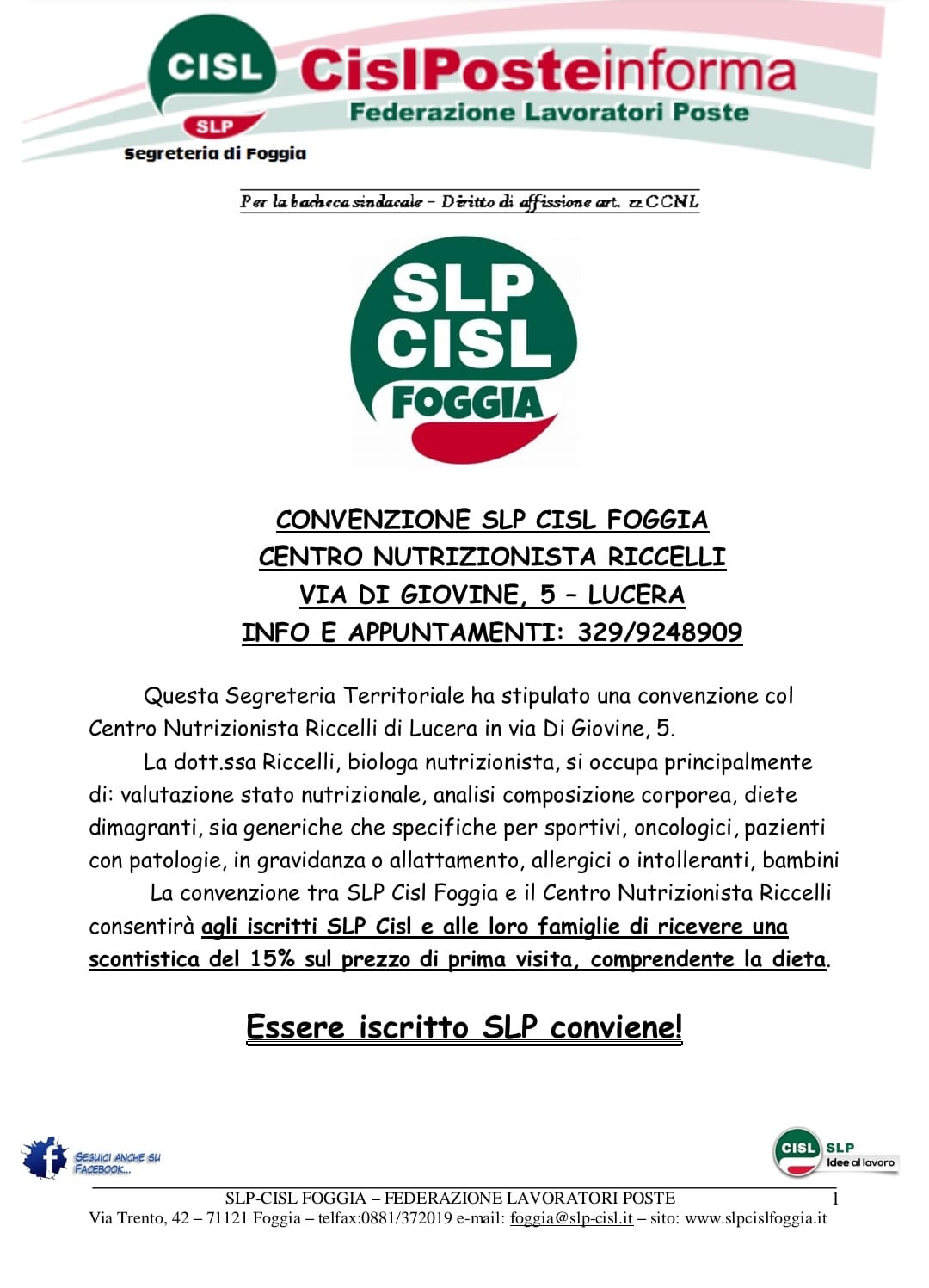 Le Convenzioni SLP CISL FOGGIA offrono servizi anche ai familiari dei propri iscritti convenzioni stipulate con aziende e negozi ...
