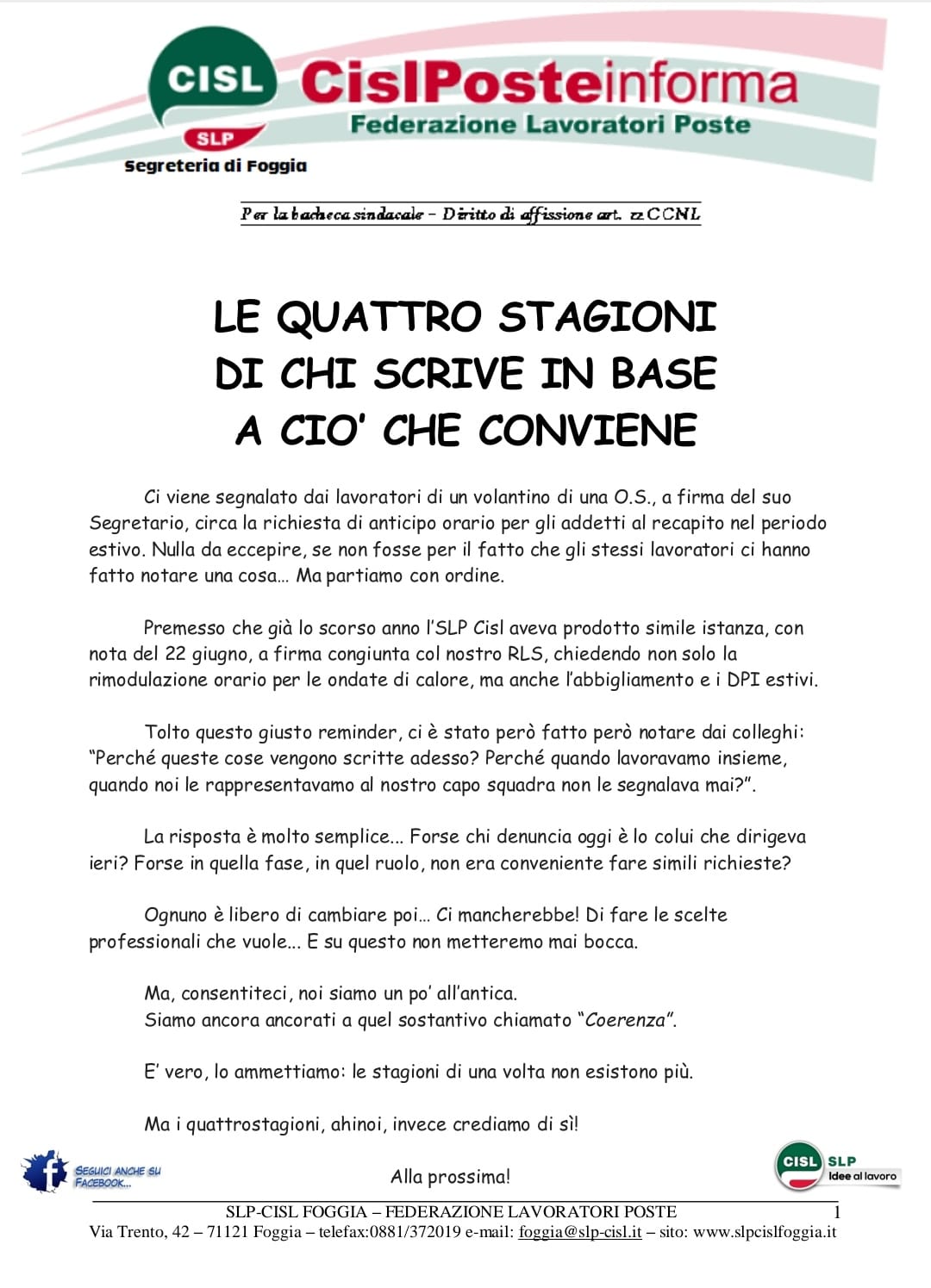 Prescrizioni La risposta del nostro RLS a una *sigla sindacale minoritaria* che si è svegliata dopo un lungo letargo.