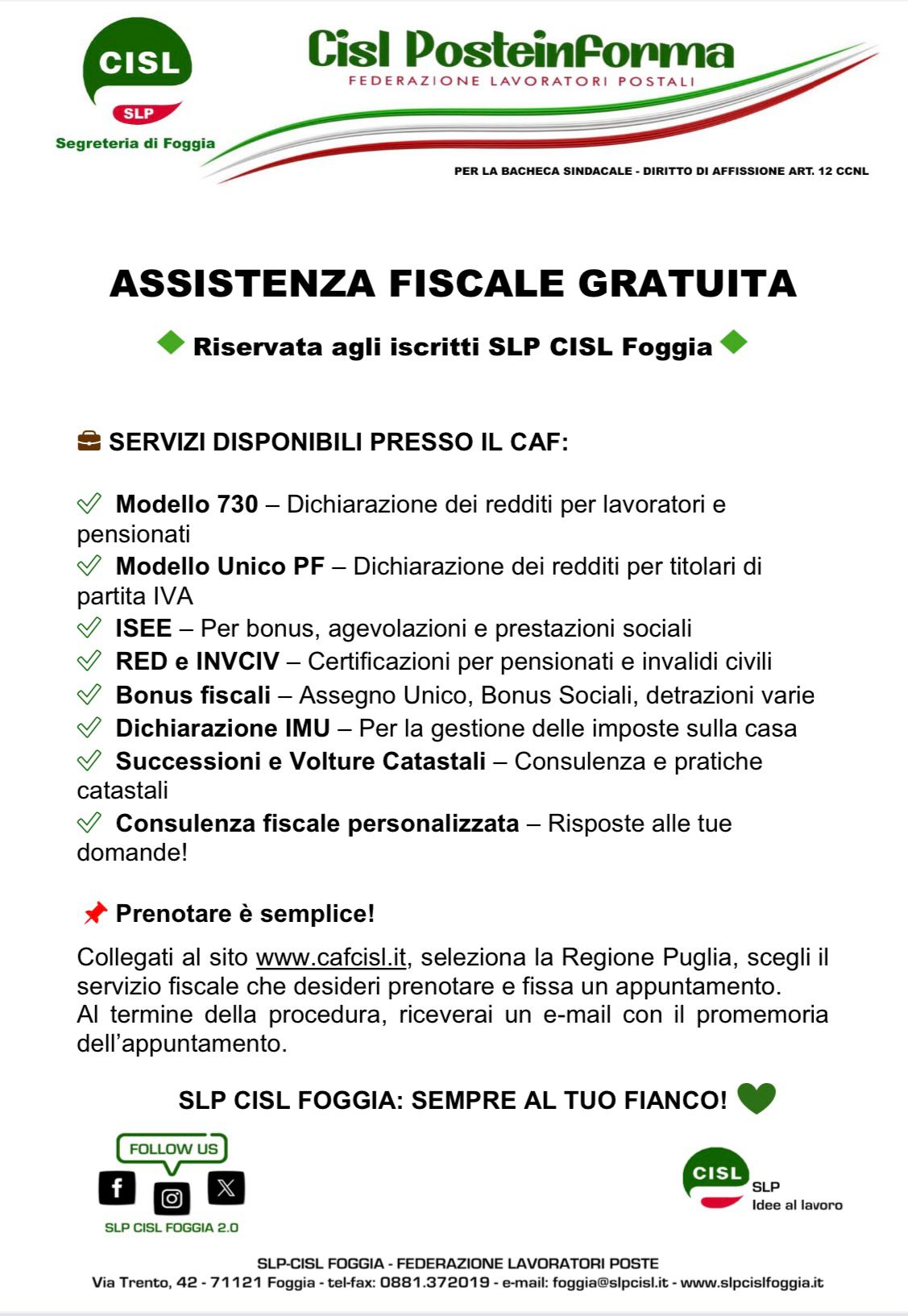 ASSISTENZA FISCALE GRATUITA ê Riservata agli iscritti SLP CISL Foggia
