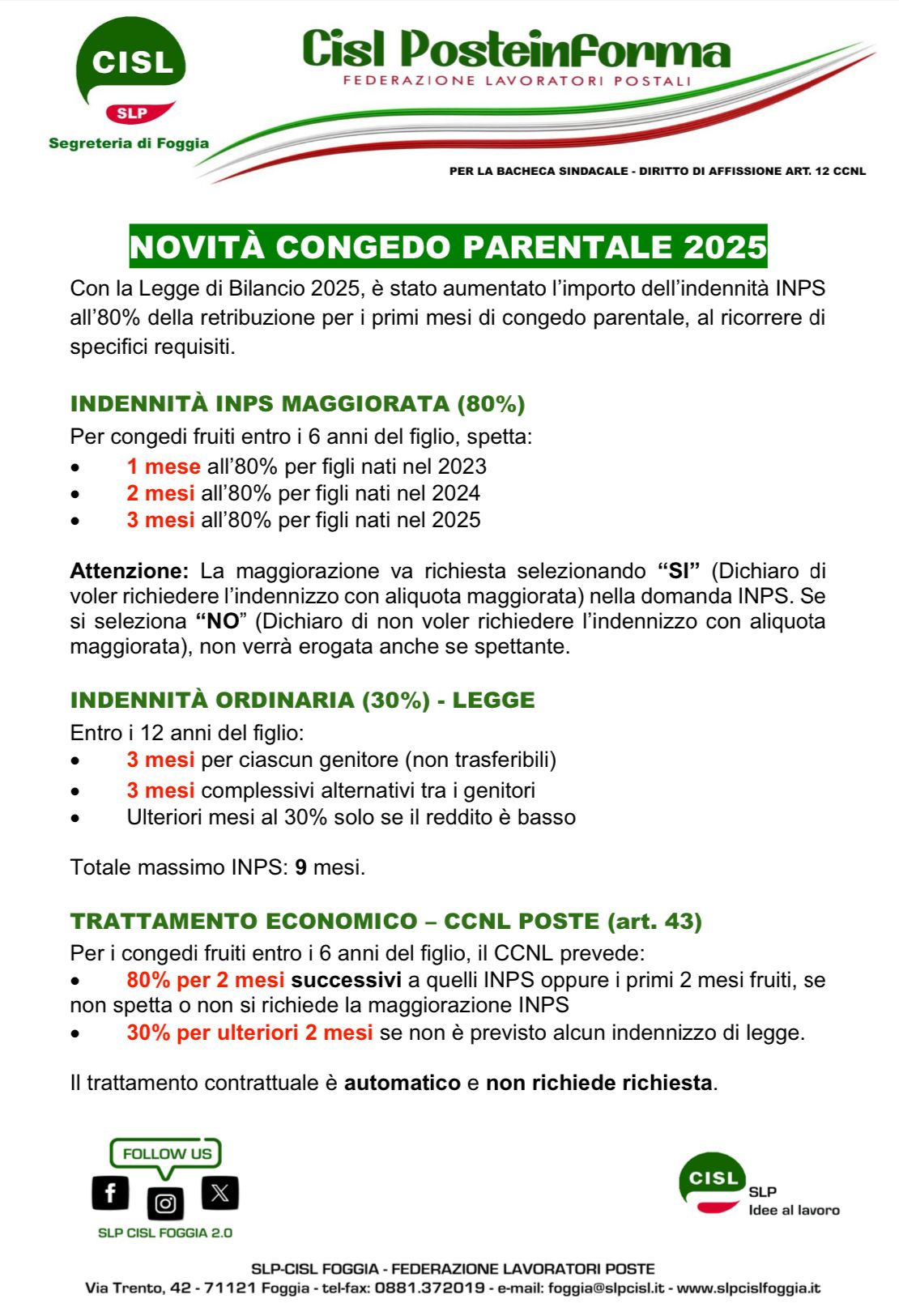NOVITA' CONGEDO PARENTALE 2O25