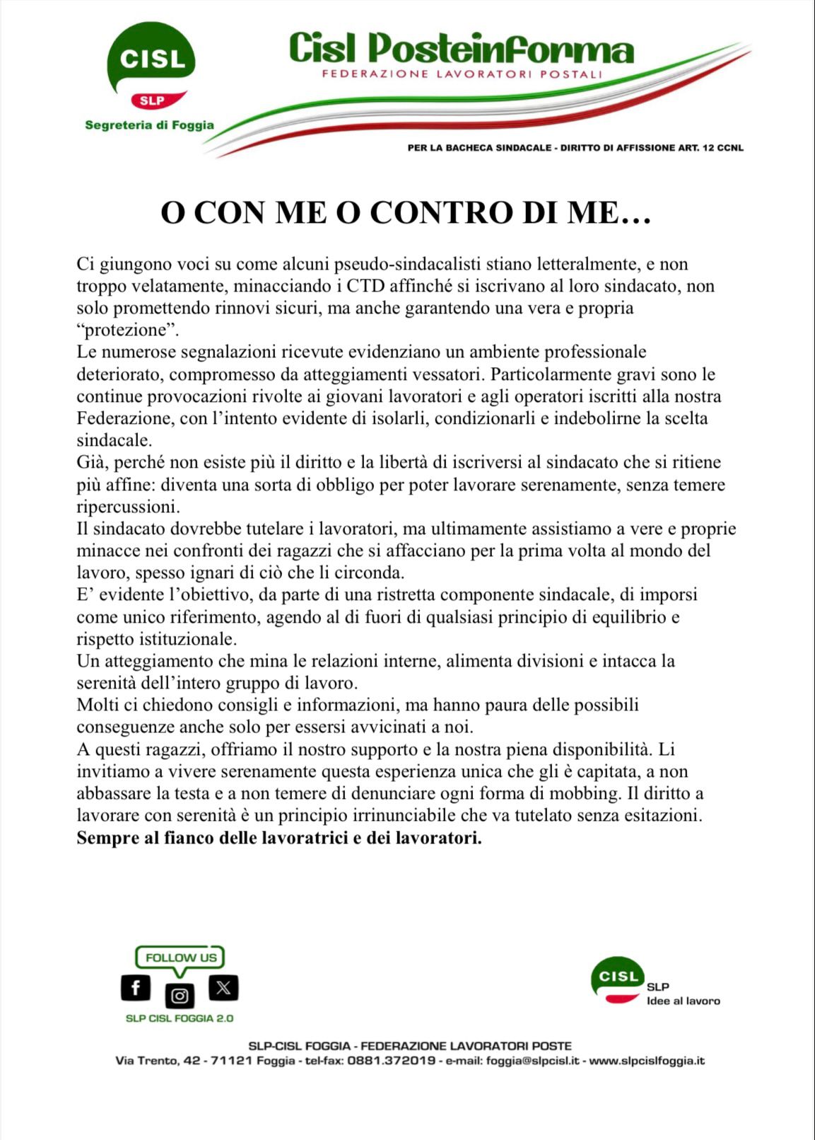 Ci giungono voci su come alcuni pseudo-sindacalisti stiano letteralmente, e non troppo velatamente, minacciando i CTD affinché si iscrivano alloro sindacato, non solo promettendo rinnovi sicuri, ma anche garantendo una vera e propria “protezione”.